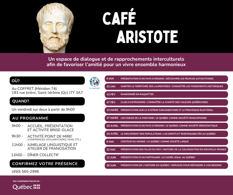 Pour ceux qui veulent faire du bénévolat, veuillez contacter Cynthia Maillé à l’adresse suivante cm.coffret@gmail.com ou au numéro suivant (450)565-2998, poste 125.